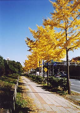 | 1段目 街路樹のイチョウ 2段目 独立行政法人 産業技術研究所のイチョウ (元工業技術院) 3段目 同峰公園のちょっと早いイチョウ 並木の撮り方難しい・・・悩んでしまいました 2002.11.15 *2段目の撮影時サーキュラーPL使用 |