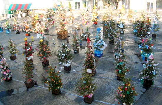 今年で5回目の「つくば100本のクリスマスツリー」毎回、嗜好を凝らしたツリーが並びます