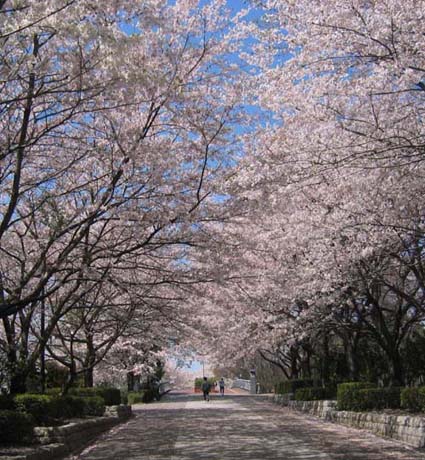 歩道が、道の両脇が、桜、桜、桜!