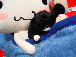 | いっぱい遊んだあとは、みんなで一緒にお昼寝です 今日からクロちゃんも仲間入りです 「みんなと一緒だと狭いけど暖かいね」 いつの間にか夢の国 怖い夢でも平気。一人じゃないって素敵 2004.2.9 |